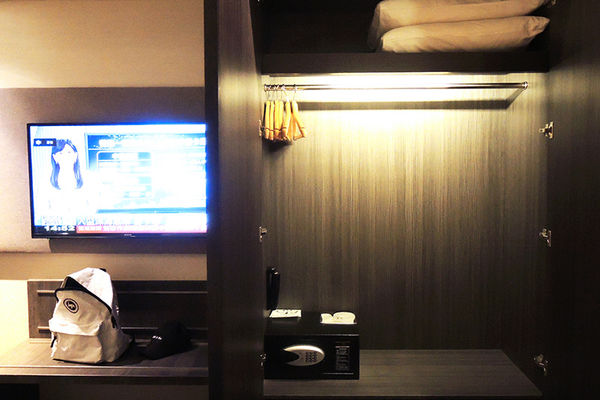 房間內該有的設備一應俱全,衣櫃打開後有兩顆枕頭、多支衣架外