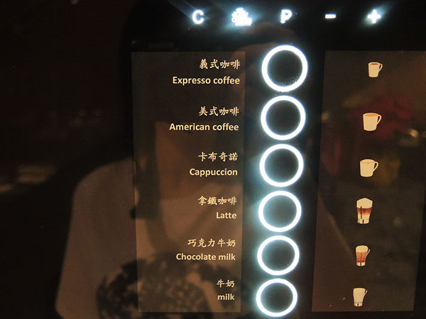 熱飲有義式美式、卡布奇諾、拿鐵咖啡、巧克力牛奶和熱牛奶,但沒有我最愛的奶茶QQ
