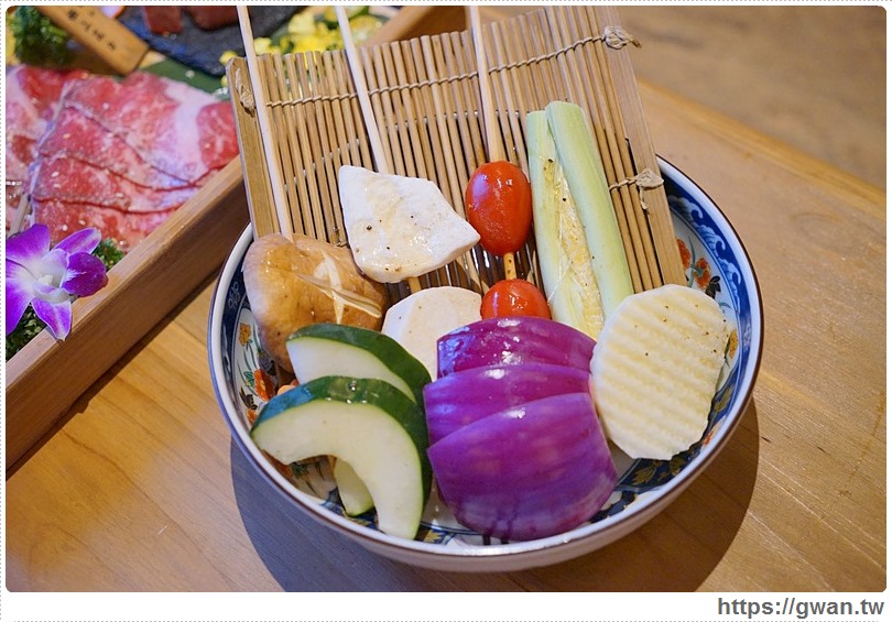 每次烤牛肉時,店員也會順便烤些蔬菜 讓整體吃起來比較不膩口