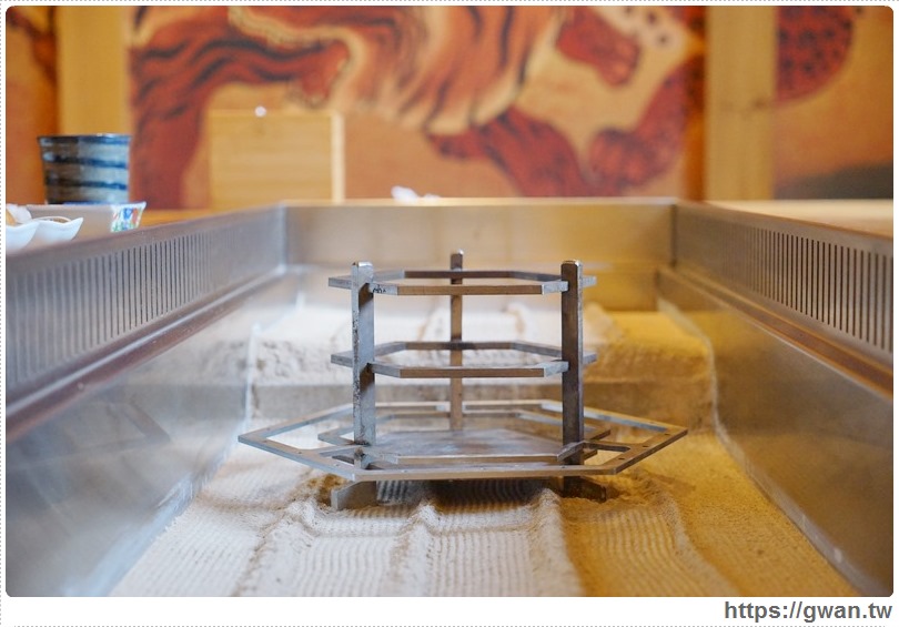用囲炉裏的炭火灰燼做出紋路,其實就像枯山水的小型縮影