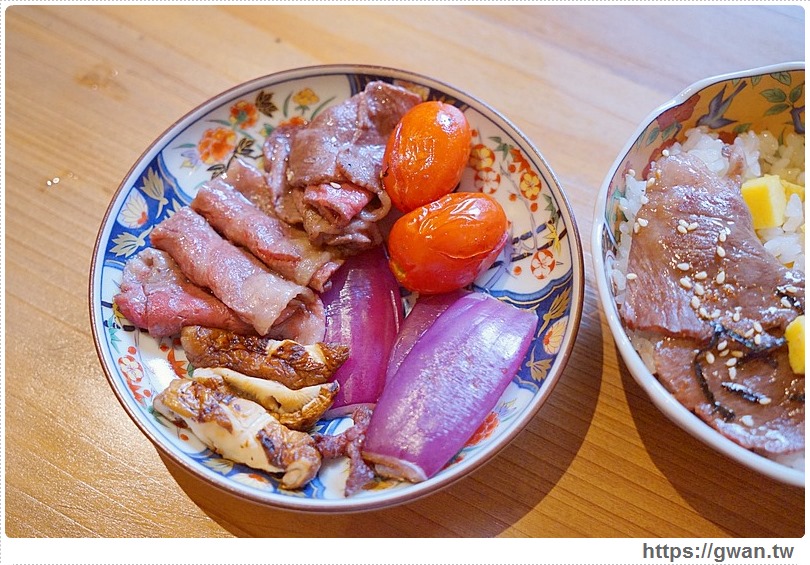 上面鋪滿炙燒過的和牛肉片、底下是Q彈的新瀉越光米