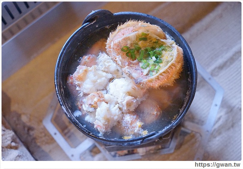 蟹殼裡裝了蔥花還有微量蟹黃 湯微滾後可倒過來,讓湯頭更鮮美