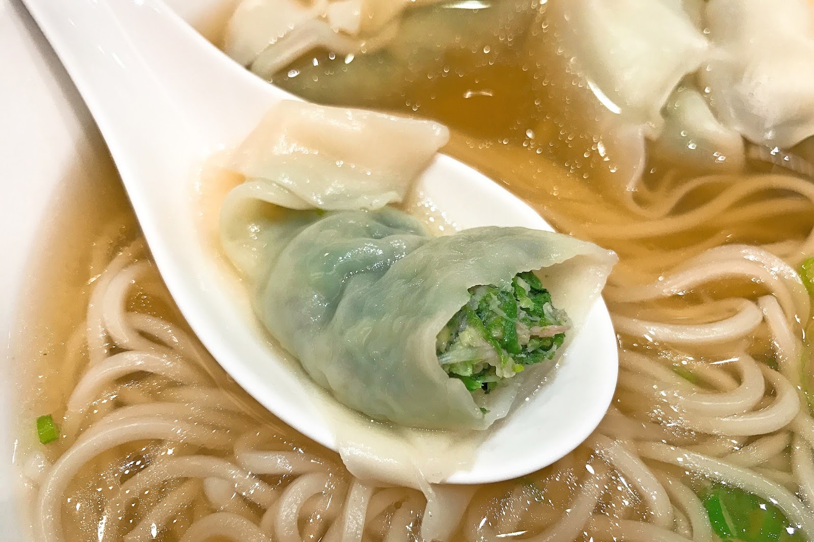 菜肉餛飩的餡料很翠綠,蔬菜的比例很多,吃起來清爽美味、不膩口!
