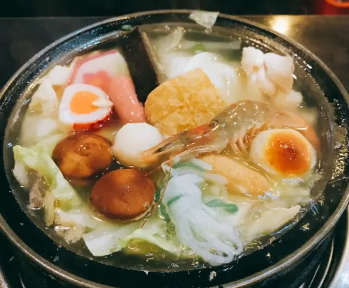 有高麗菜、香菇、秀珍菇、豆腐、還有一些火鍋料 另外還有一尾蝦