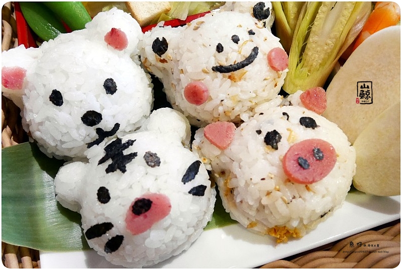 萌造型的飯糰分別包有 昆布(巧虎、小熊)、玉米(小青蛙)、肉鬆(小豬) 口味