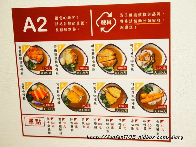 三時午咖哩屋總共有8套餐,還有單點類可以加點