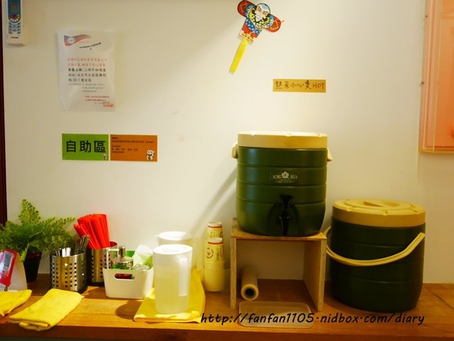 全店是採自助式,且不收服務費,餐具,醬料、熱茶,都可以自行取用喔!