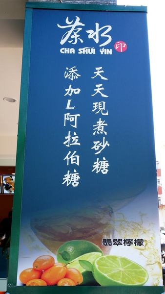 兩邊包柱強調"杯杯現泡,採用獨特萃茶技術"及"天天現煮砂糖並添加L-阿拉伯糖"呢~
