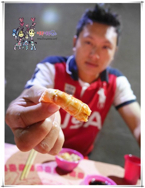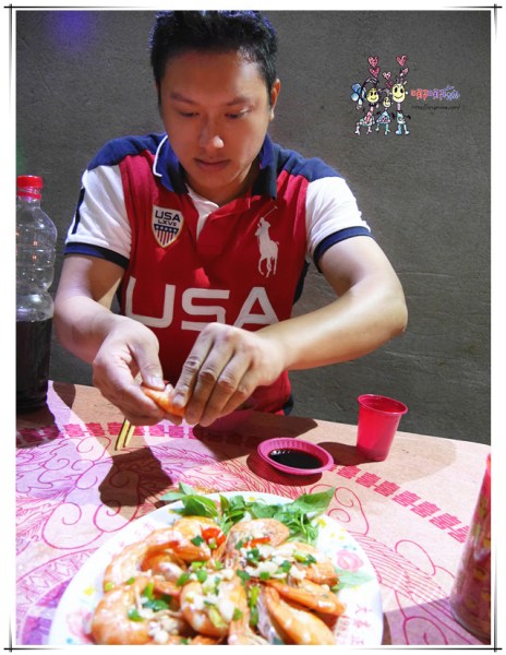 有蝦子耶!親愛的,我剝給妳吃喔!