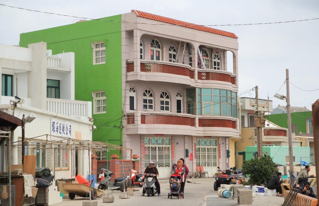 巷弄的兩旁 是整齊的樓房 漆上了統一的色調 成為島上特殊的風景