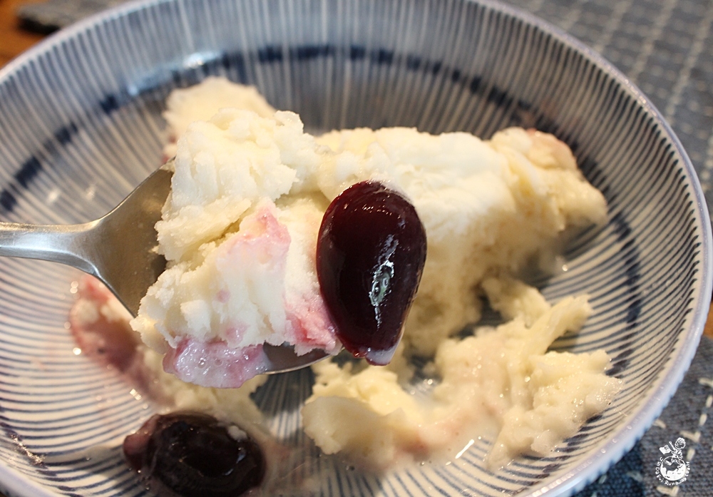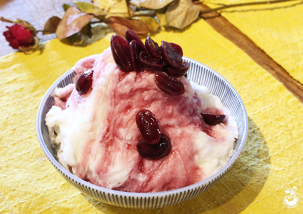 剛入口之際滋味酸甜又沁涼,但小朋友別高興得太早,因為啤酒的苦味隨即而來,簡單來講就是先甘後苦。友人表示第一口像戀愛,第二口就彷彿失戀於是開始買醉的感覺,吃到後面就喝醉回不了家了。葡萄酸度和香氣都很足夠,可惜醬汁稍嫌少了一些,吃到後來就差不多等於單吃啤酒雪花冰,口感會比較苦,個人覺得兩個人共享一碗啤酒雪花冰會比較剛好,如果容易酒醉的人不建議點XD