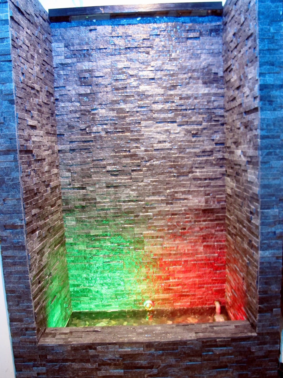 店的最後方有著彩色燈光的水牆