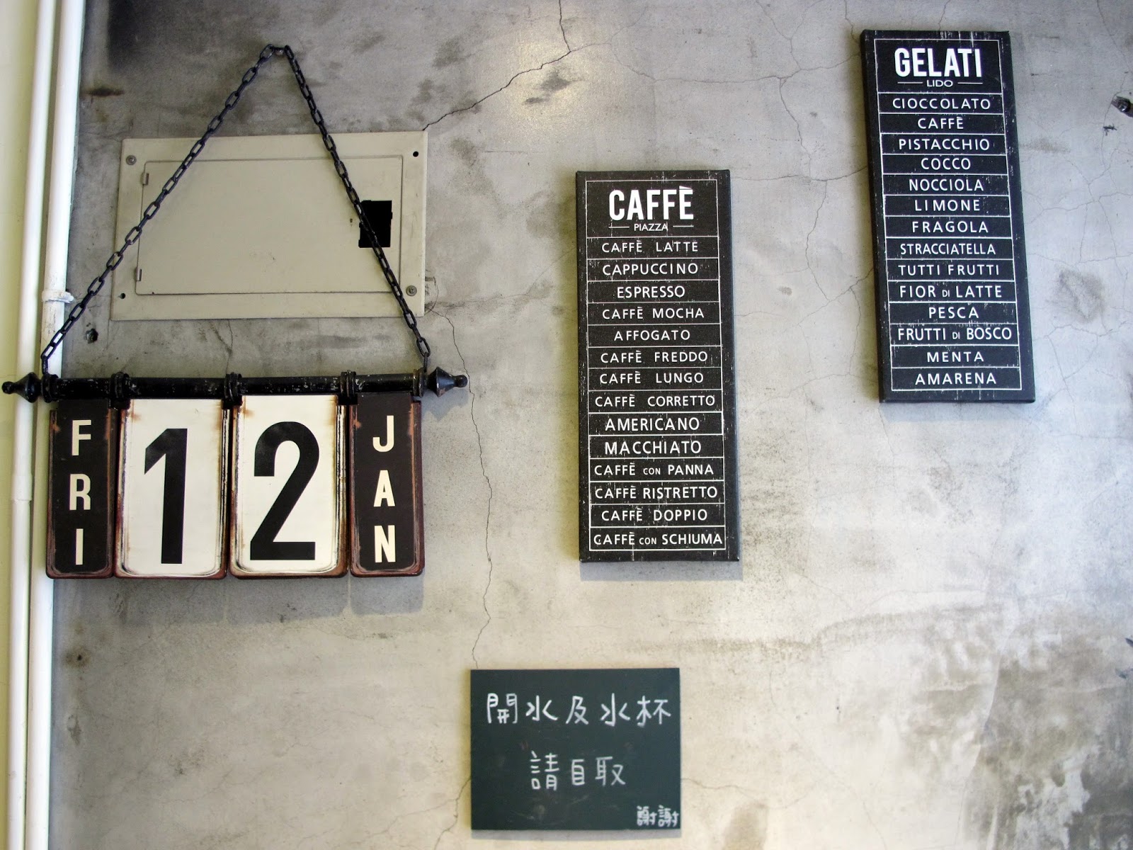 依稀可見老屋才有的牆壁,牆上著美式風格的招牌