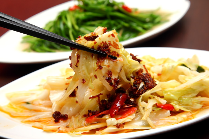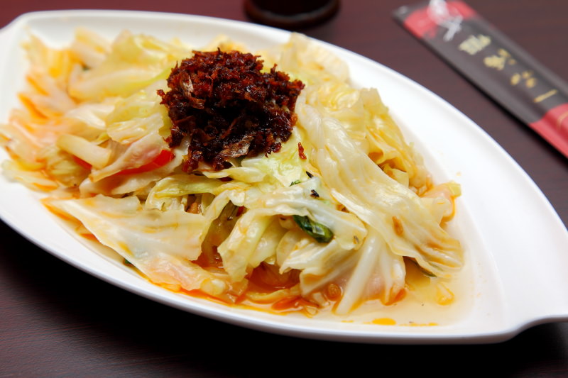 大火炒高麗菜最是美味了!這是在家沒辦法料理出來的味道,一品活蝦加入自製炒製的干貝XO醬一起拌炒,XO醬的鹹辣口感帶出高麗菜清甜爽脆的風味!