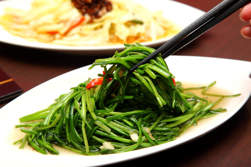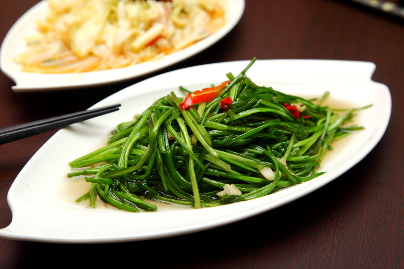水蓮菜就是要吃本身的甜度脆度,一品活蝦不過度調味,水蓮菜吃來口感清爽清甜