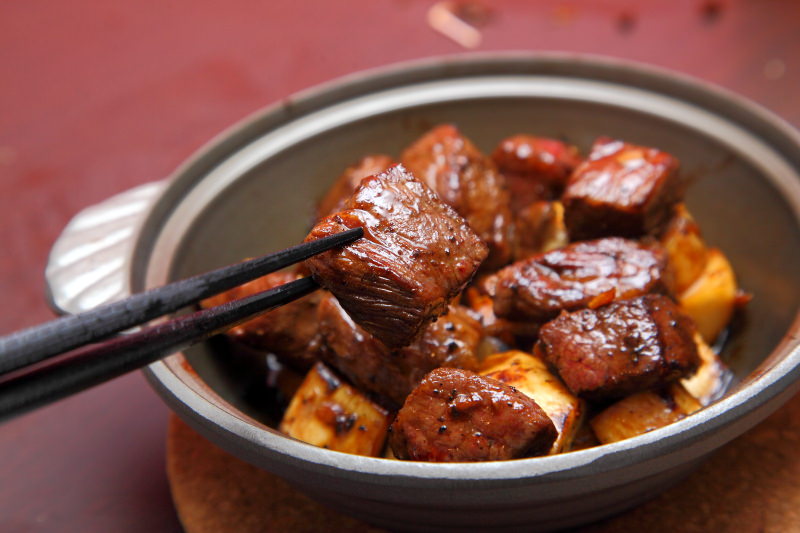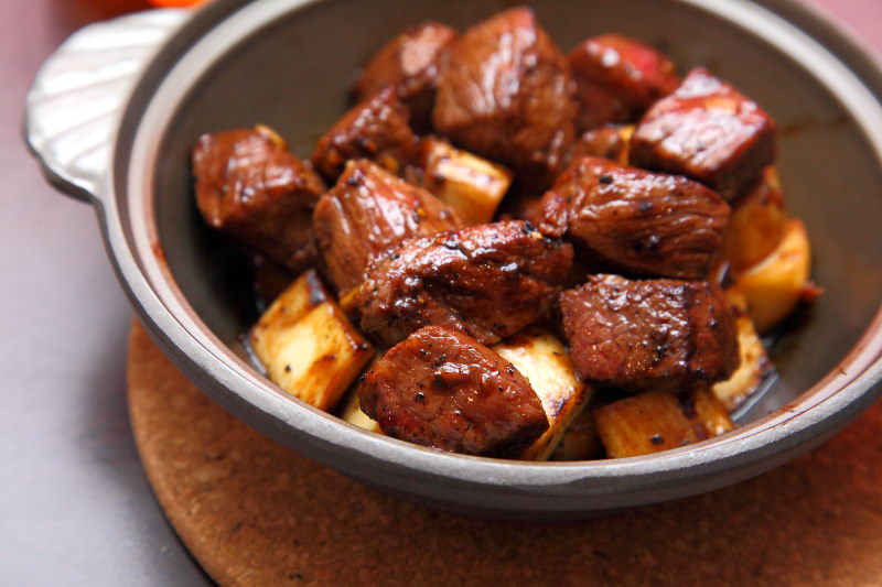 一品活蝦使用美國牛U.S. Prime翼板部位,入口軟嫩肉汁豐富,不過度調味,撒上些許的黑胡椒及魚汁搭配杏鮑菇一起拌炒至五分熟,切成厚塊的骰子牛吃起來非常有口感,越是咀嚼肉汁不斷的湧出,美味!