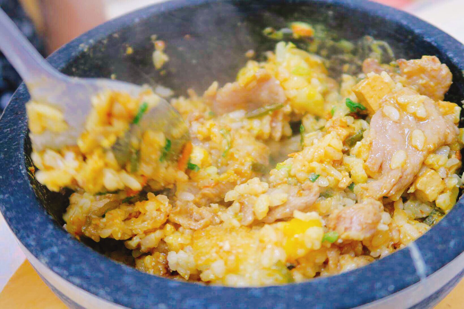 上餐速度超快,服務態度也是我想要讚許的部分,店內餐點主打石鍋拌飯,石鍋的溫度很高,印象最深刻的是送餐過程都會聽到老闆說小心燙喔!很貼心的提醒,而且老闆有說過,如果想吃鍋巴多一點或在餐點上有其他客製化的需求,都可以跟他們反應,在能力範圍之內,都可以給予滿意的服務!超貼心的啦!