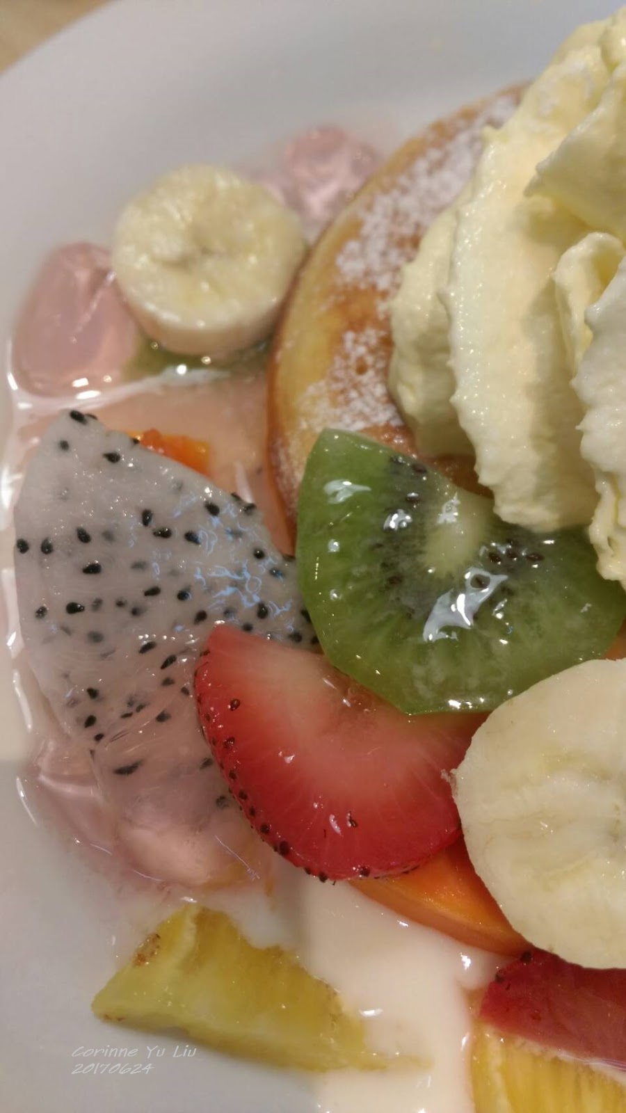 這是台灣限定的鬆餅口味,上面一大叢鮮奶油是芒果口味的哦!😲😲😲