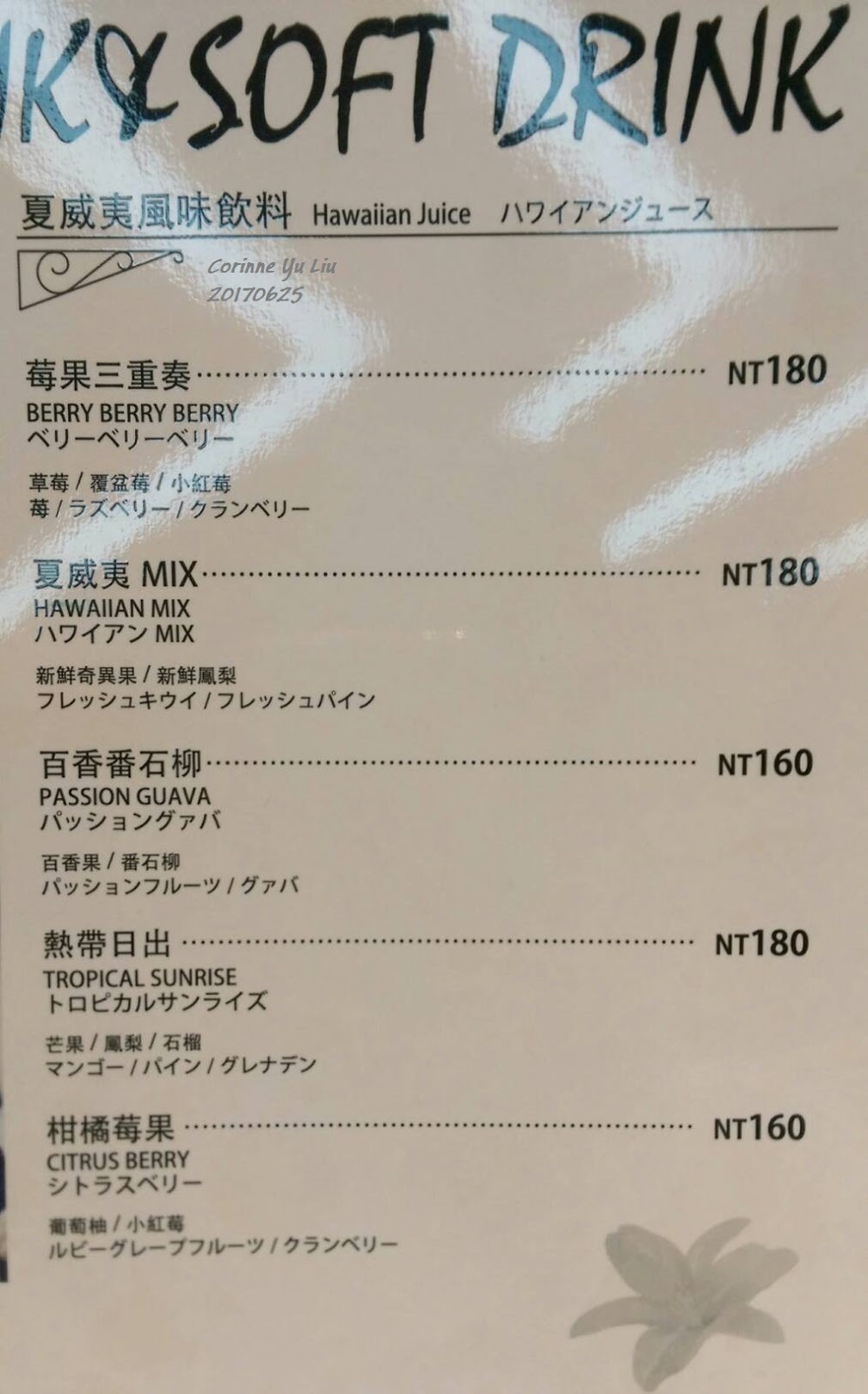 飲料一樣也有很多哪裡都會有的正常人品項,正如我剛剛所提:「畢竟這裡是Hawaiian cafe嘛!」所以,那麼睿智的你,一定猜到了!