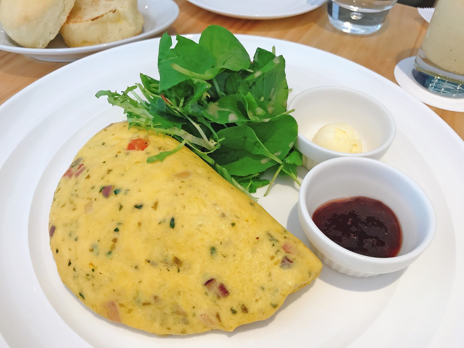 這份佬墨輕辣蛋捲,可以選擇搭配可頌、吐司或馬芬搭配,我們選了英式馬芬,佐著果醬和奶油,Sarabeth's的莓果果醬近似我常買回家的奧地利果醬,果香濃厚又不甜膩,質感很棒!