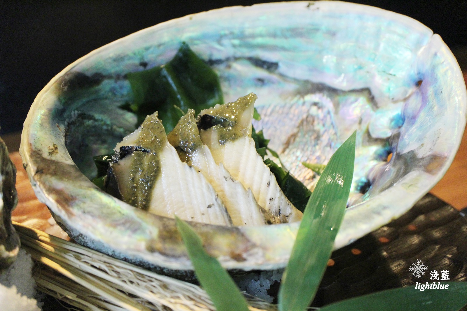 最後是澳洲黑鮑,厚薄剛好,所以很容易咀嚼又不失口感,吃起來脆脆甜甜,上頭還有以黑鮑的肝做成的醬汁,有淋到醬汁的地方味道會更濃郁