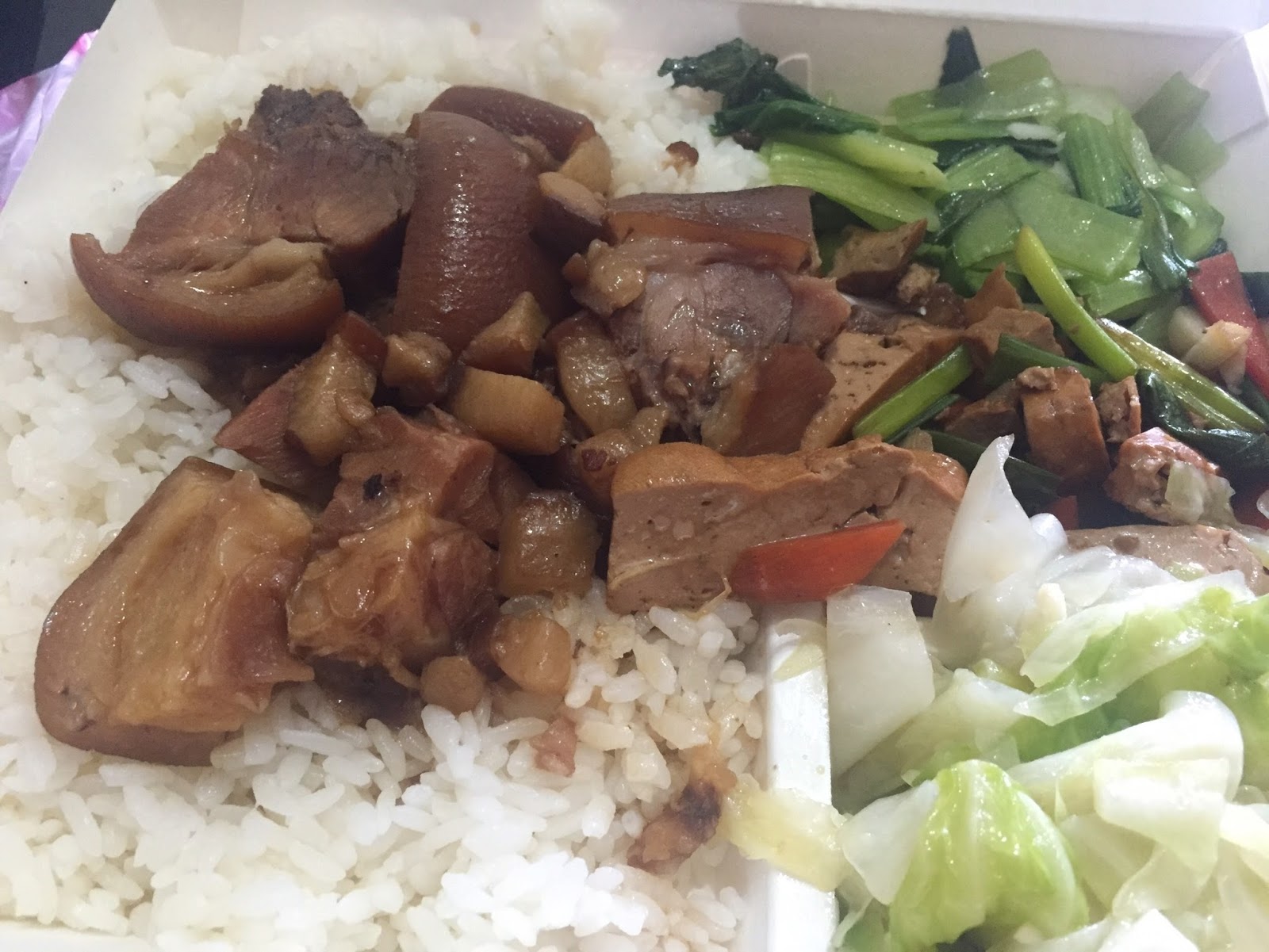 滿豪邁的就把豬腳、魚肉、排骨都放在櫃台,視覺享受還不錯!不過在負責點單的不知道是不是老闆娘,點餐的時候會忙著包裝而忽視要點餐的你....有點尷尬XD