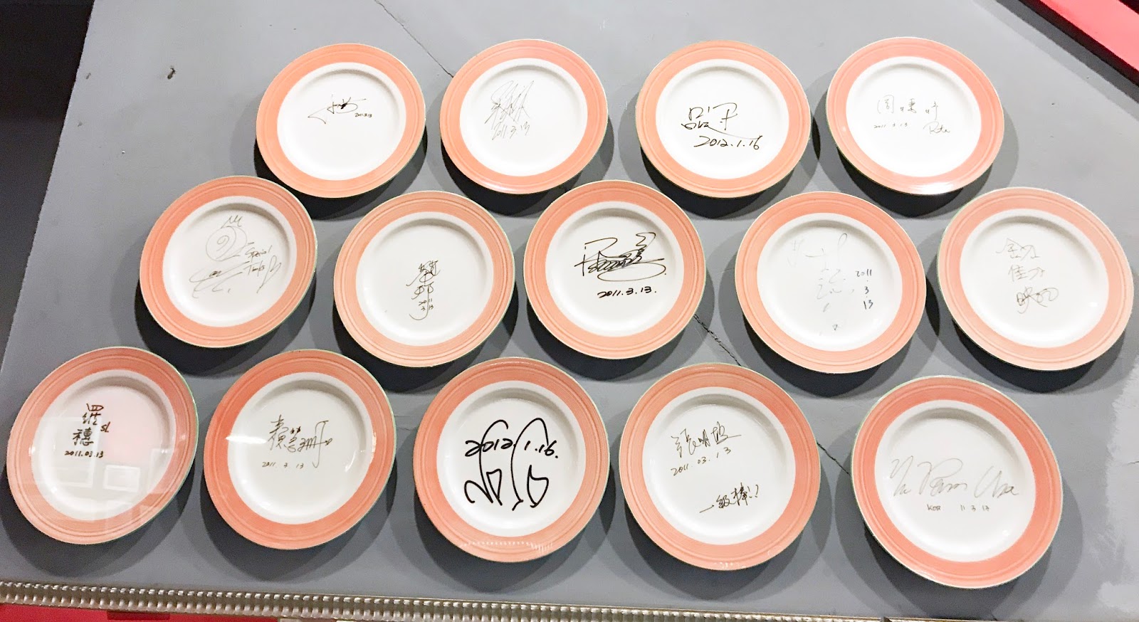 好奇~近距離一看才知每個盤子上都是明星的簽名留念