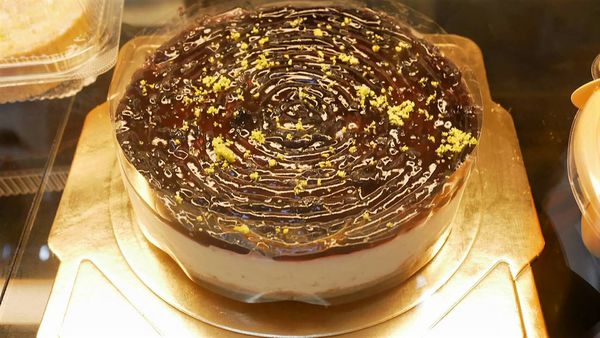 淡粉色澤超粉嫩少女色系的【玫瑰重乳酪】,上頭還擺可食的鹽漬櫻桃,微鹹微香又脆脆的口感很特別呢^Q^