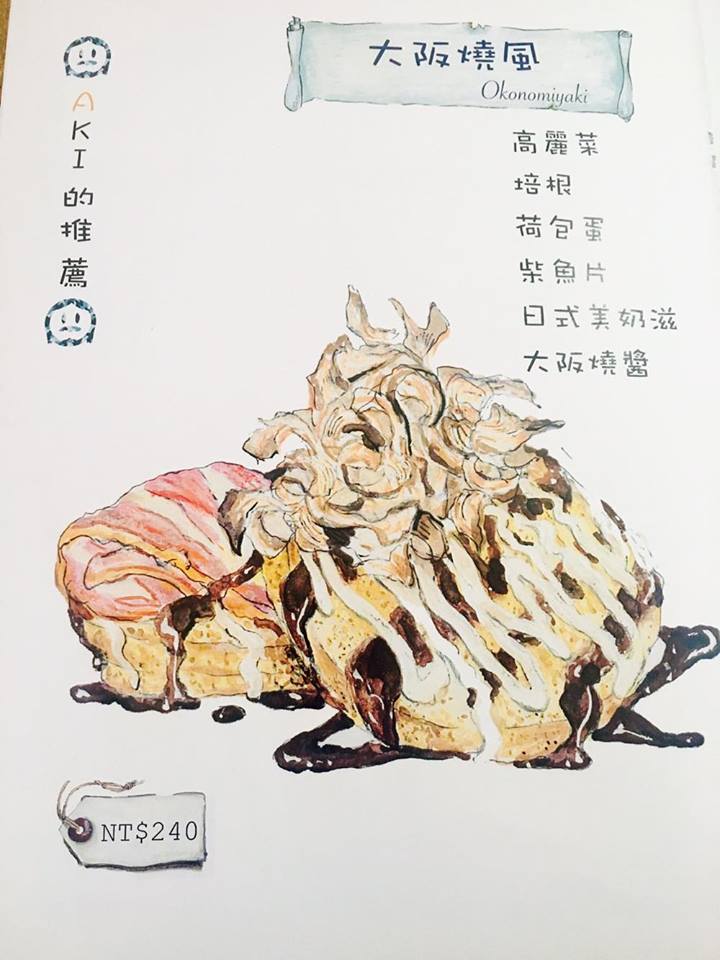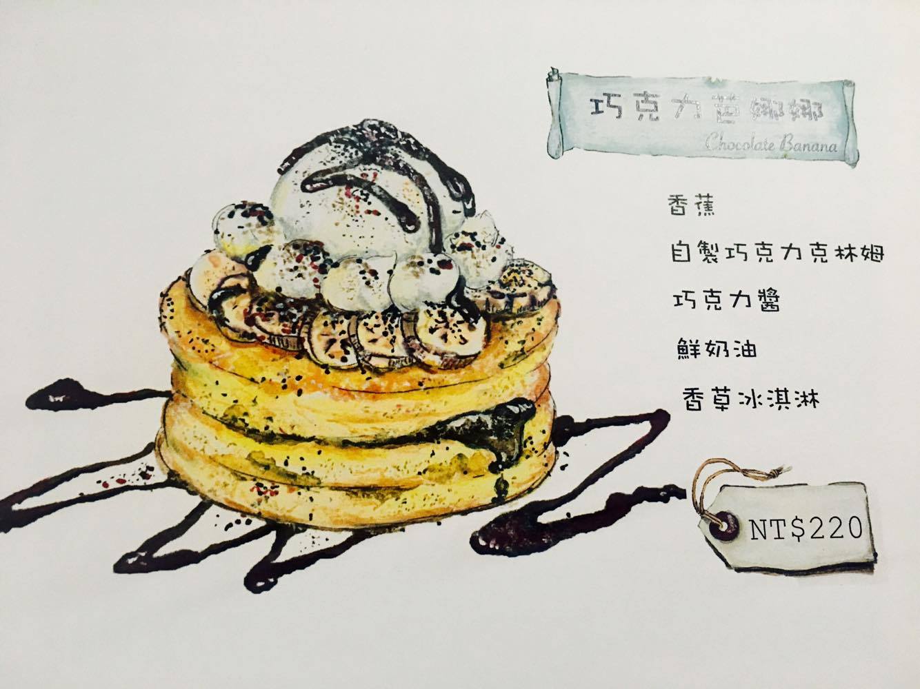 接下來是他們的菜單,不得不說,真的是太用心了,他們的MENU不是餐點的圖片,而是細緻的插畫,然後旁邊簡單的介紹裡頭的食材,鬆餅有甜有鹹,甜的口味中有可能會加一些鹹的東西,例如培根、海鹽等等,但不用擔心,他們搭配的超好,又甜又鹹,反而不覺得膩