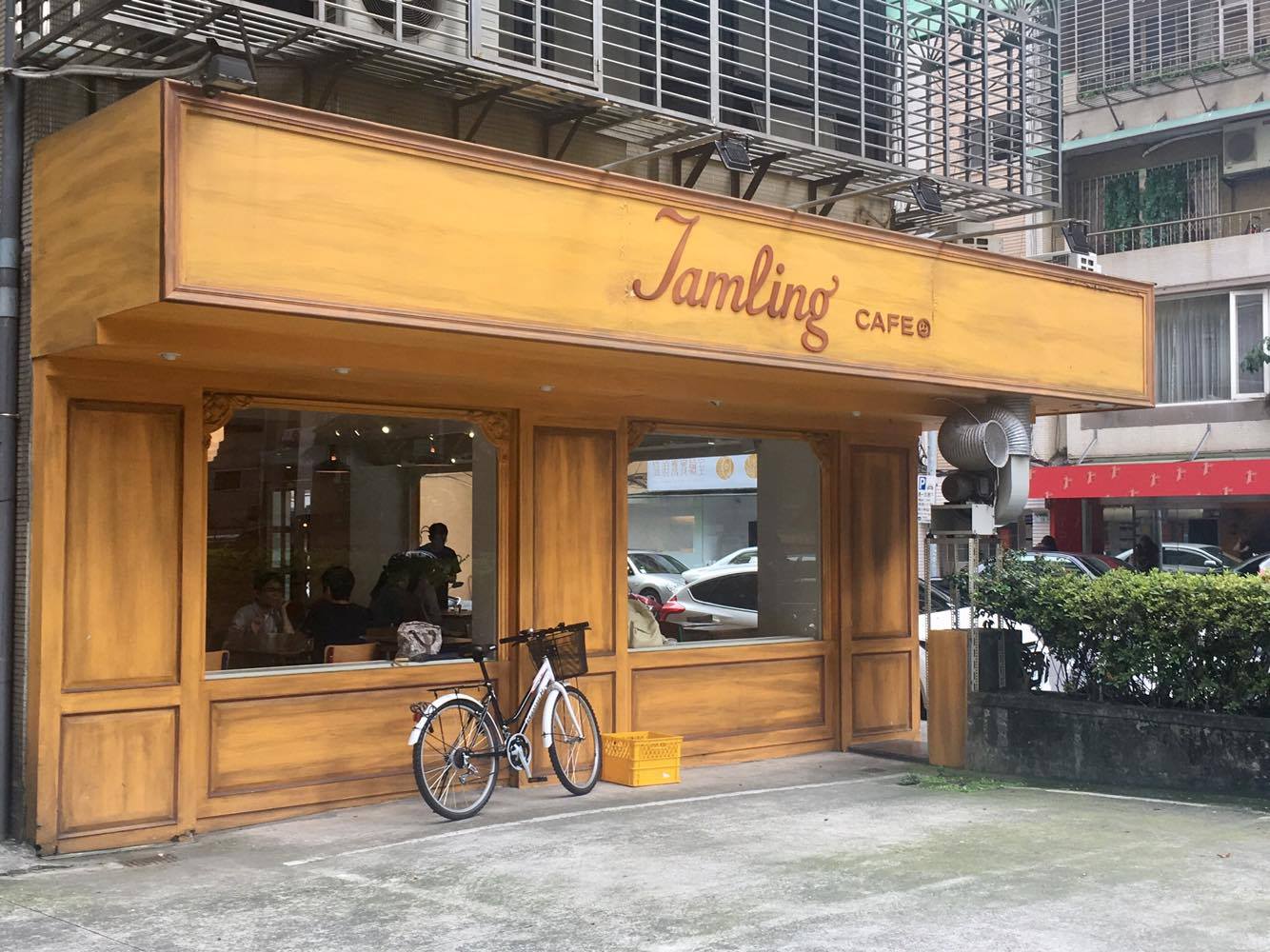 裝潢跟招牌是一體的,上面大大寫著店名 Jamling Cafe