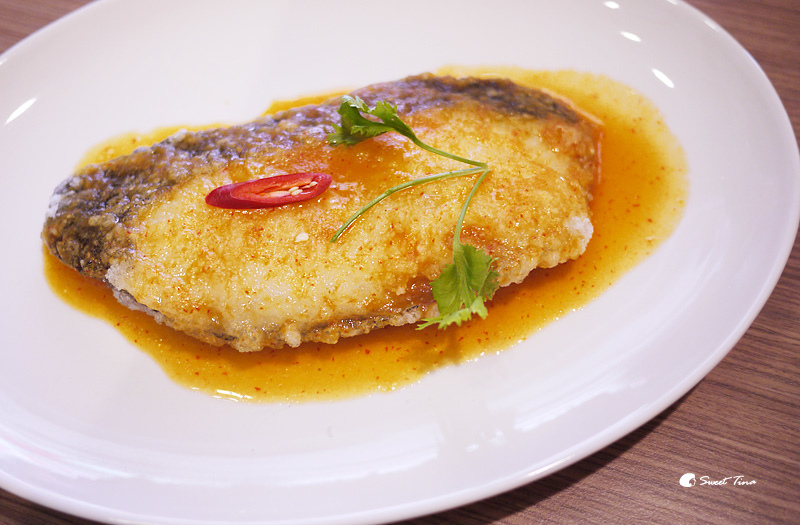 香酥檸檬魚(鱈魚) - 以往多半是吃泰式清蒸的檸檬魚,第一次嚐試香酥的,香酥的鱈魚淋上醬汁後,鮮嫰的魚肉口感更是跳了,推推~