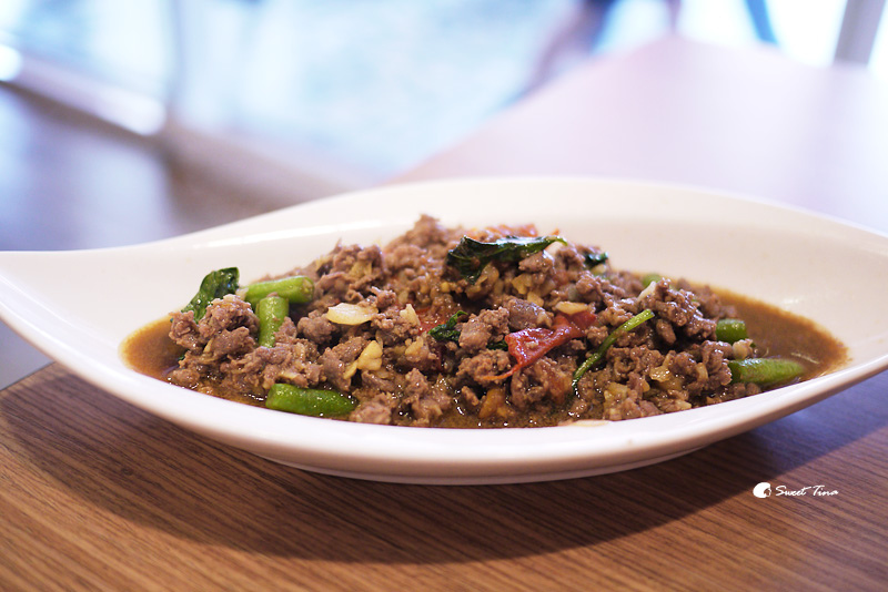 * 白飯$20、泰式冰奶茶$40、涼拌海鮮$150、蝦醬空心菜$90、泰式椒麻雞$120、打拋牛$150、綠咖哩椰香雞$140、香酥檸檬魚(鱈魚)$280