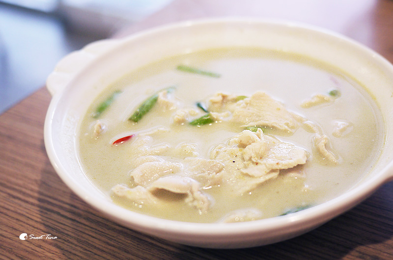 綠咖哩椰香雞 - 咖哩香氣濃郁,看似溫和,其實還挺有辣度的,拿來拌飯超好吃的,不過因雞肉是切片的,所以口感上稍微硬了些,比較可惜了。