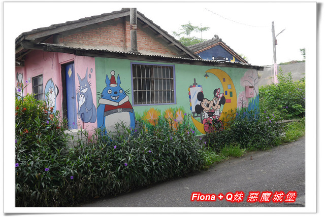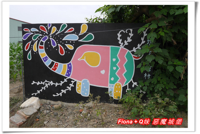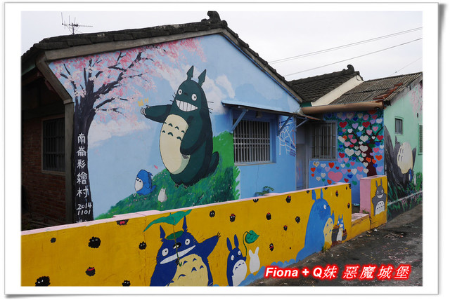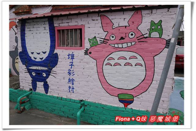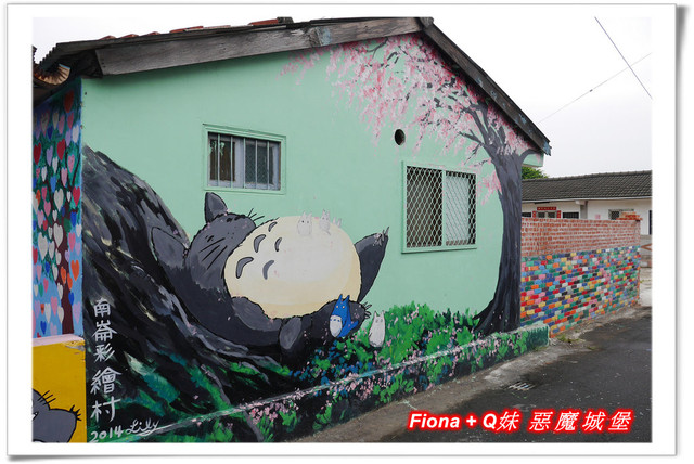 嘉義這一帶有三座彩繪村,每個的主題都不一樣,「南崙彩繪村」是龍貓,「埤子彩繪村」是大象,我們沒認真逛的「北崙彩繪村」則是青蛙,其中以「南崙彩繪村」範圍最廣,除了龍貓外,還有一些可愛的卡通人物,色彩豐富繽紛的彩繪,讓整個村子更加鮮明活潑了呢 !