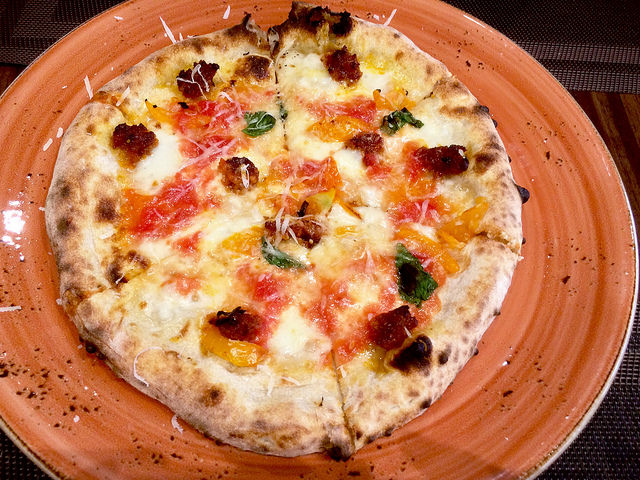 主廚自製卡拉布里亞辣香腸、番茄、薩丁尼亞羊乳酪、莫札瑞拉乳酪