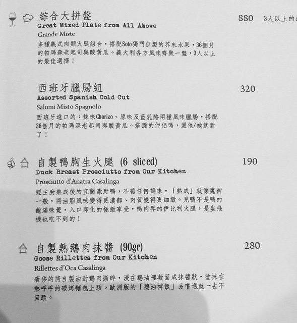 雖說是義大利餐廳,但其實提供許多前菜冷盤,像是西班牙TAPAS那樣