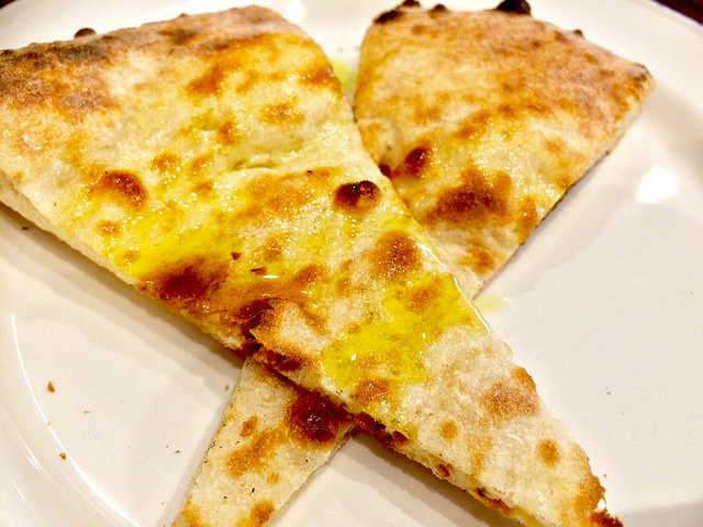 像是拿坡里披薩皮直接單烤,上頭淋些蜂蜜,帶著嚼勁與麵粉的香味,越咬越好吃