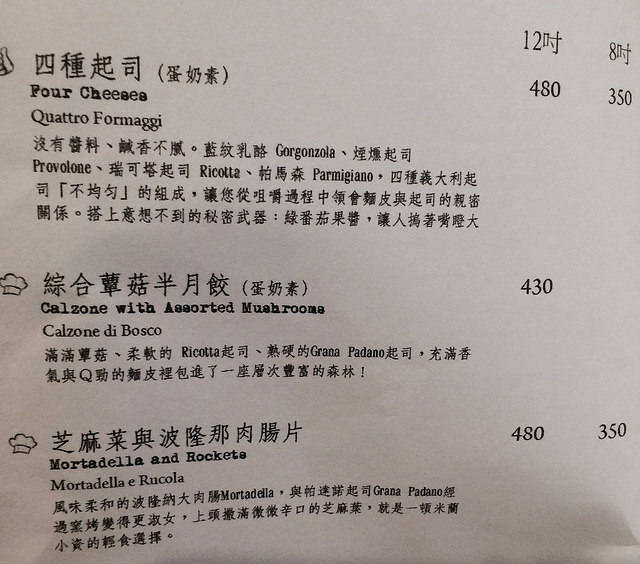 拿波里式餅皮,邊緣微脆、中間有彈性與嚼勁;餡料倒不是放得太多,簡簡單單的義式風格