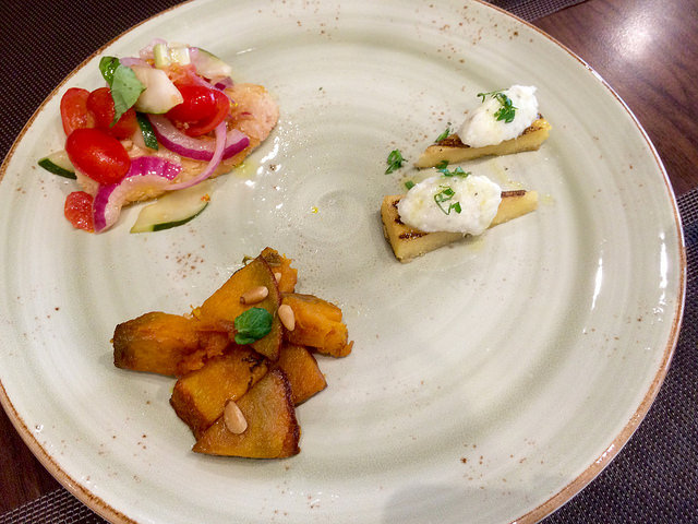 三種前菜組成的拼盤,分量來說不多,兩人分剛好
