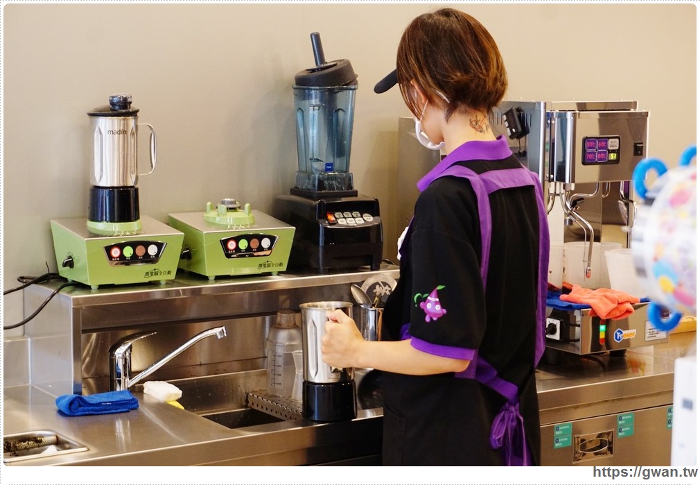 日出茶太重慶店離最熱鬧的府中商圈有一小段距離 但顯眼的紫色招牌,讓人遠遠就能認出