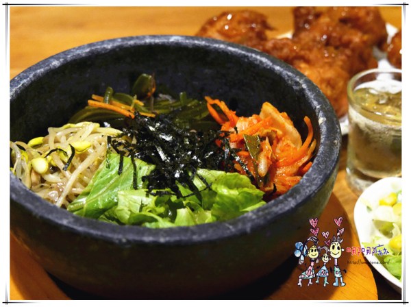 這是我們店內最招牌的雞唐揚石鍋拌飯。