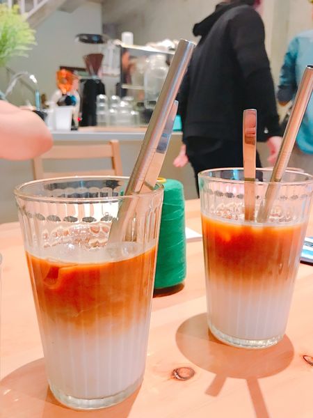 我點拿鐵,店家很環保的使用不銹鋼吸管(是說我最近真的好掙扎到底要不要買玻璃吸管阿~~~~)