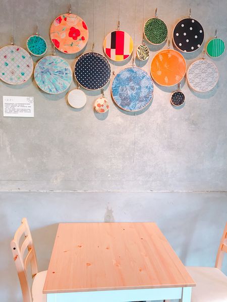 牆上圓圓的藝術品就是展示各個年代的服飾布料,認真看每個布都有他的特色,就算時代演進還是會找到你喜歡的花色~