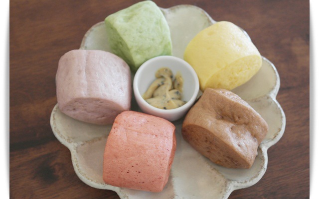 彩色小饅頭佐茶白巧克力醬,這顏色是不是很粉嫩很可愛!!!