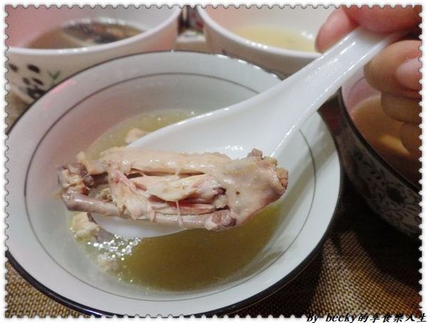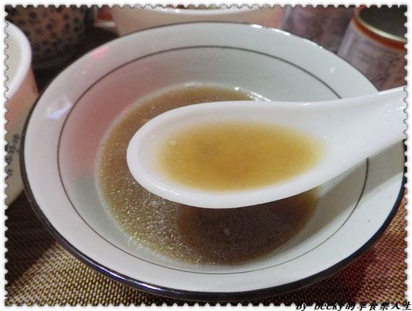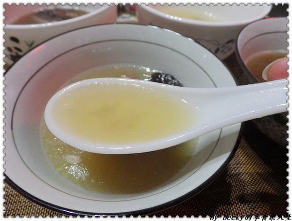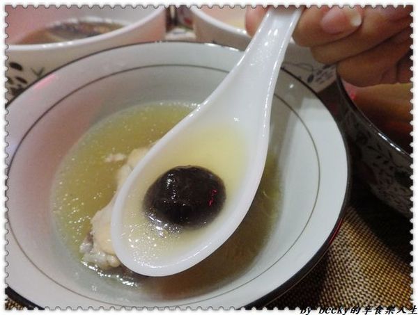 舀一匙湯入口,非常清澈,喝起來鮮甜,跟一般在家煮的沒什麼兩樣,雖然上面月浮一層油脂,但入口卻不油膩,在喝湯還有喝到微絲絲的金華火腿,味道很棒喔!