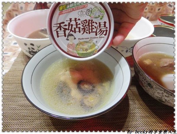 倒入碗中,可以看到一顆顆的完整的香菇,還有小雞腿,像新鮮現煮的食物一樣,原汁原味。