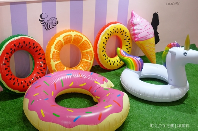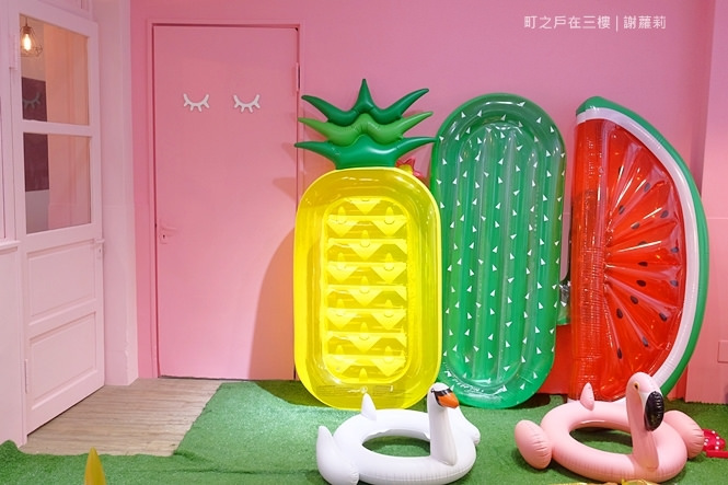 一進去你會有種像被這些韓風的泳圈給填滿,放眼過去,盡是少女們的拍照道具,各種水果浮版、還有天鵝、紅鶴小姐,都是時下非常流行的拍照元素。