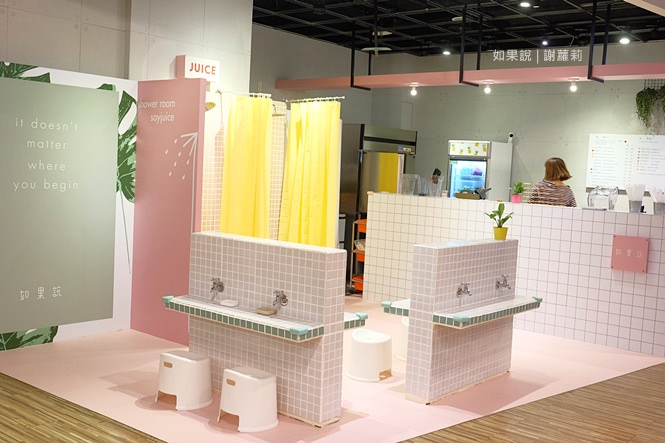 簡約和風,夢幻花牆陪你吃挫冰 韓妞場景,坐在澡堂淋浴間喝果汁