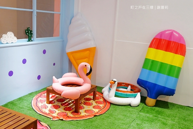 評價時間:町之戶在三樓完全就是一個打中少女心的夢幻地方,在裡面光是拍照就可以消磨你非常多的時候,你很難想像,只不過是一些泳圈,就可以讓人玩得不要不要,尤其它們家的蛋糕真的做得非常可愛,雖然味道不是太好、價格也偏高,但走進這裡,還是能讓人心情變得非常好!