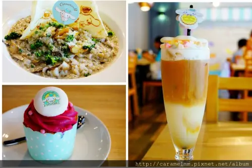 Tina選擇的喜拿套餐內容有 : 喜拿海鮮義大利麵、棉花糖奶茶、杯子蛋糕(覆盆子),一送上來就讓人忍不住尖叫啦,也太卡哇依了~